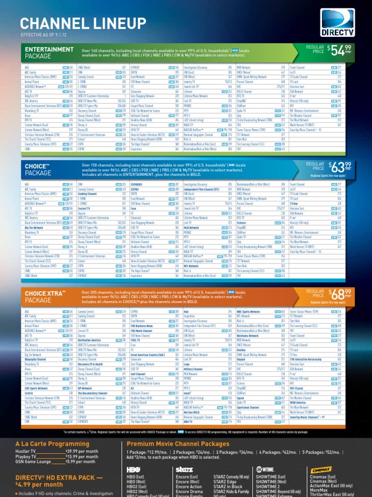 Web enjoy a vast library of streamable content from your favorite networks on directv, including tv shows, seasons & episodes, movies, news, and sports. Web directv a few years ago stopped producing printed guides upon request and instead have it listed on the website to download and print yourself. Click view channel listings by package. Find your channel lineup using.