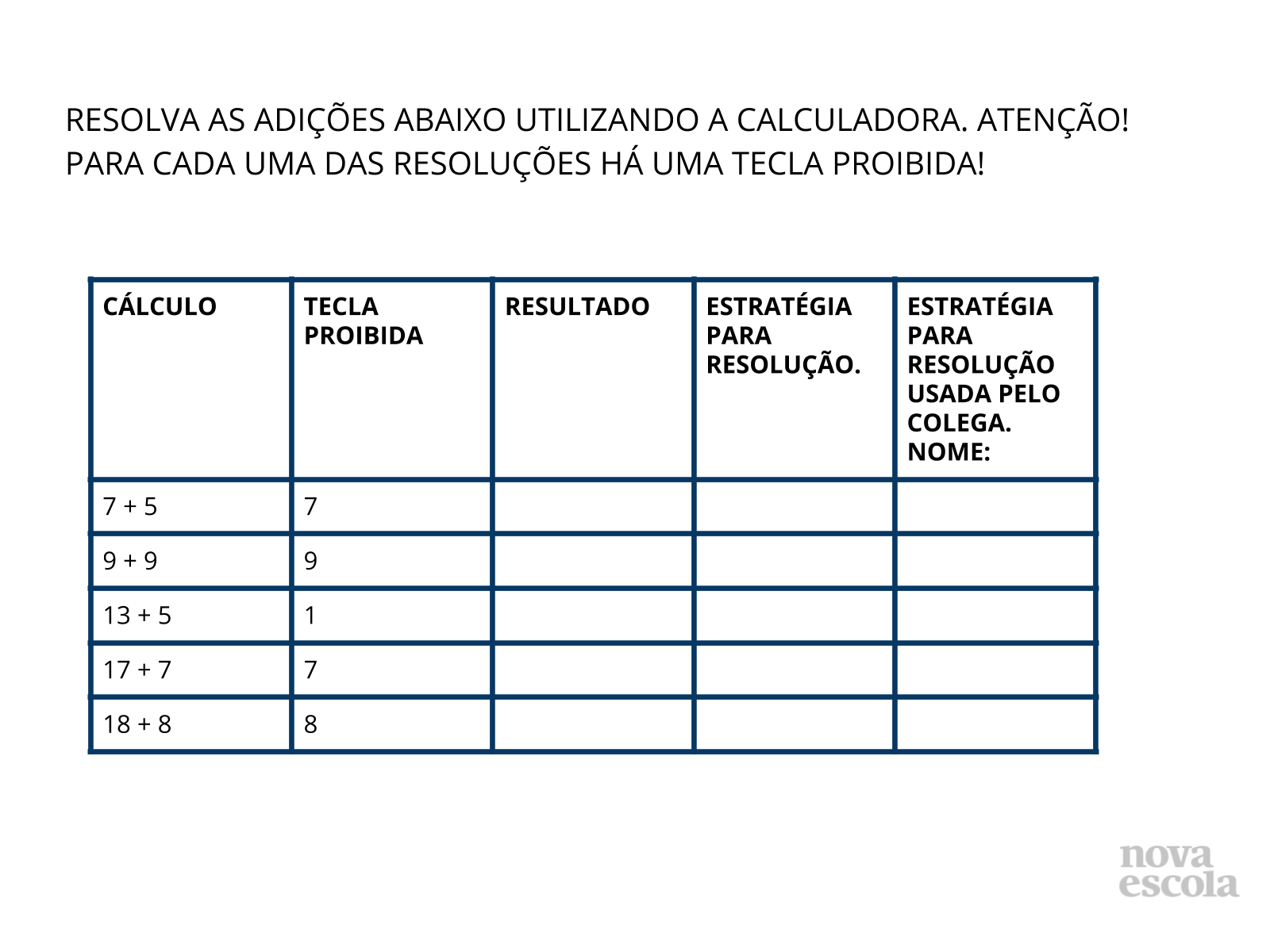 Fatos básicos da adição na calculadora Planos de aula 2º ano