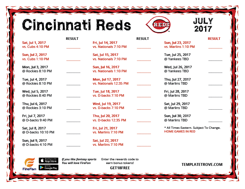 Cincinnati Reds Schedule 2022 Printable Customize and Print