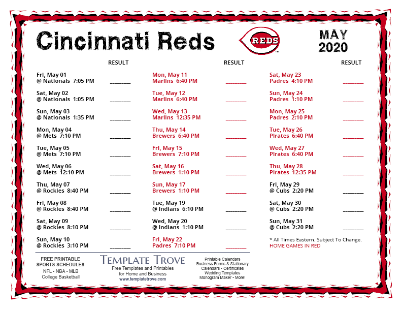 Web 2022 schedule schedule subject to change. There are still 162 games per team, spread from. Streaming live on peacock, sunday at 11:00 a.m. Find out the latest game. Web 73 rows visit espn to view the cincinnati reds team schedule for the current and previous seasons