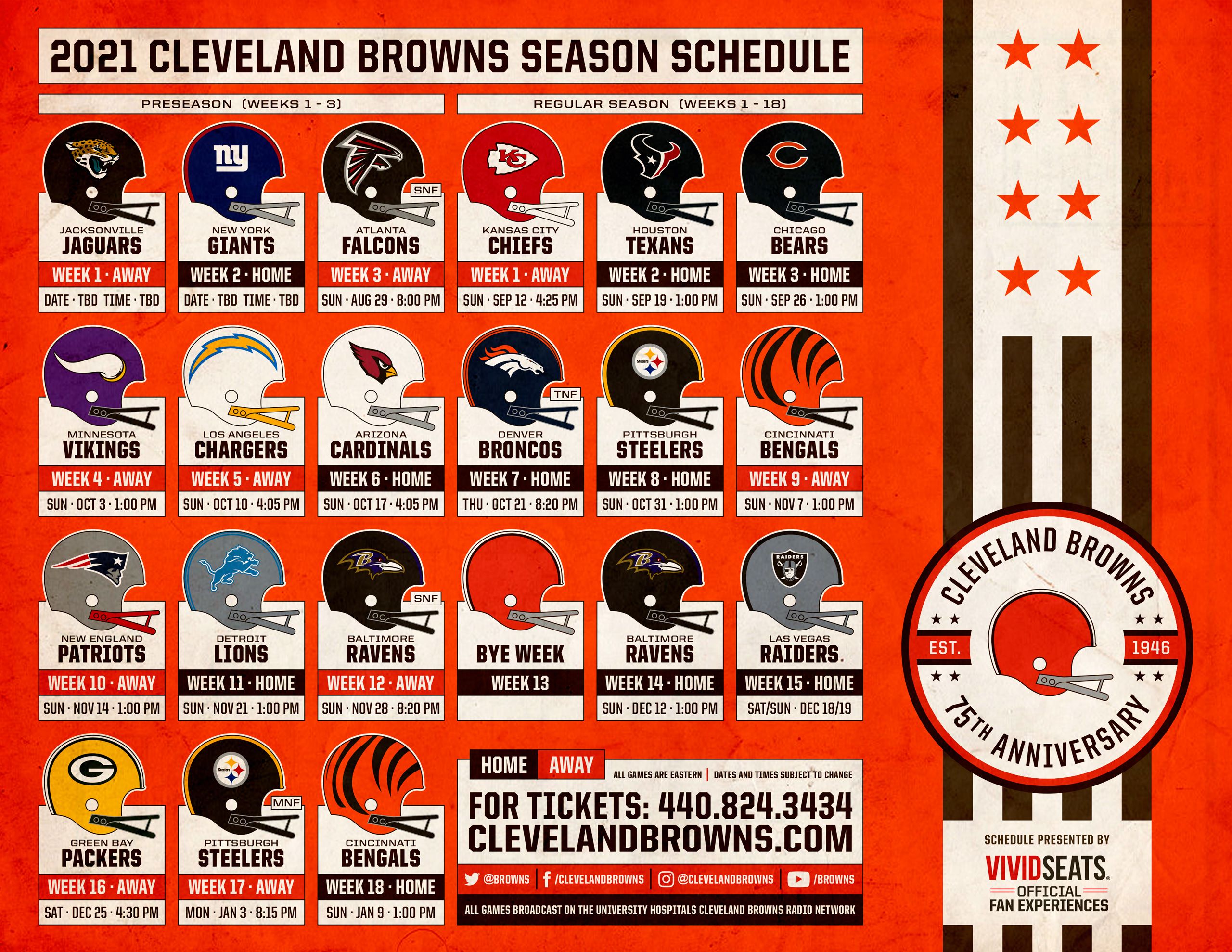 The schedule includes opponents, date, time, and tv network. Available in each us time zone. The pro football hall of fame. The official source of the latest browns regular season and preseason schedule. Schedules print on 8 1/2 x 11 paper and can be printed with color or all black text.